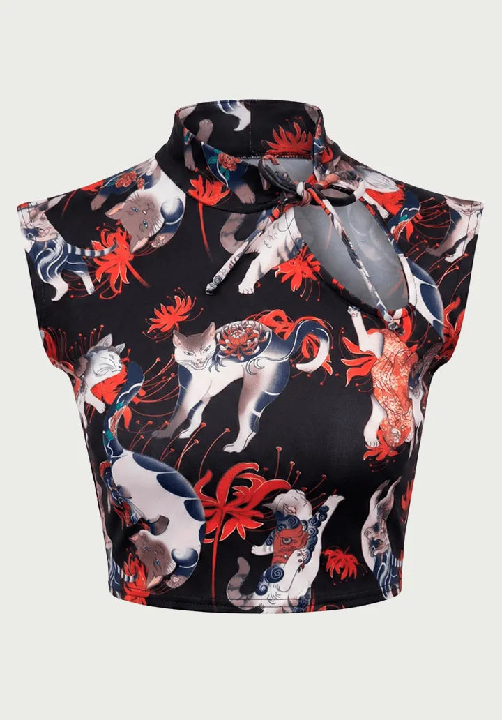 Top Estilo Japonés | Gatos tatuados estilo y2k harajuku